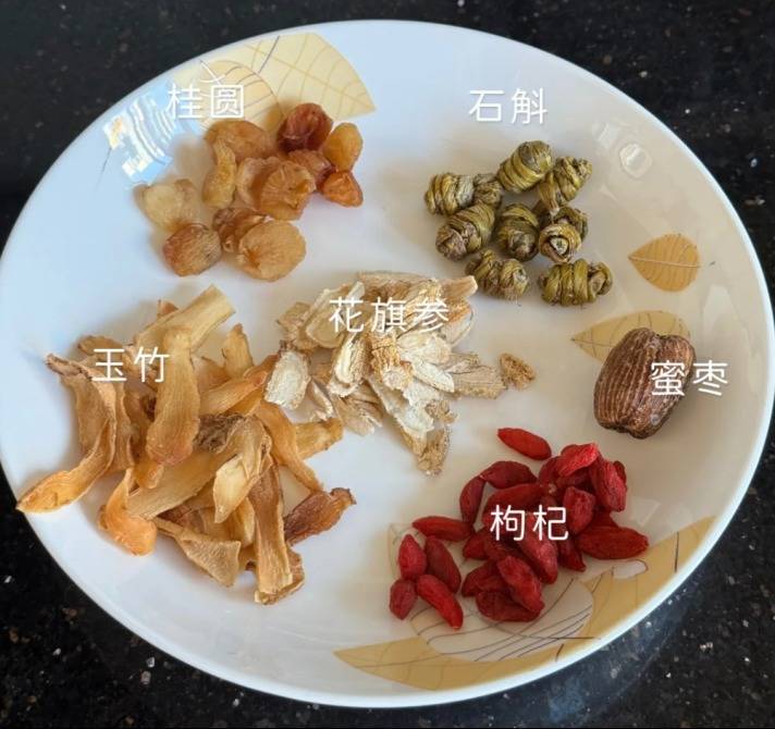 全部食材:选购桂圆干8-10个(桂圆干是一种补血安神的食材,煲汤煮粥可以放入一些),石斛8克,花旗参6克,生姜一大块,枸杞子少许,新鲜的排骨400克(排骨是一种多功能的食材,肉质鲜嫩,色泽红润,非常有弹性,经过焯水去腥后,可以烹饪成各种美食),冷水和温水若干,食盐少许,胡椒粉一丢丢,半块老姜,2个蜜枣,玉竹10克,其他。